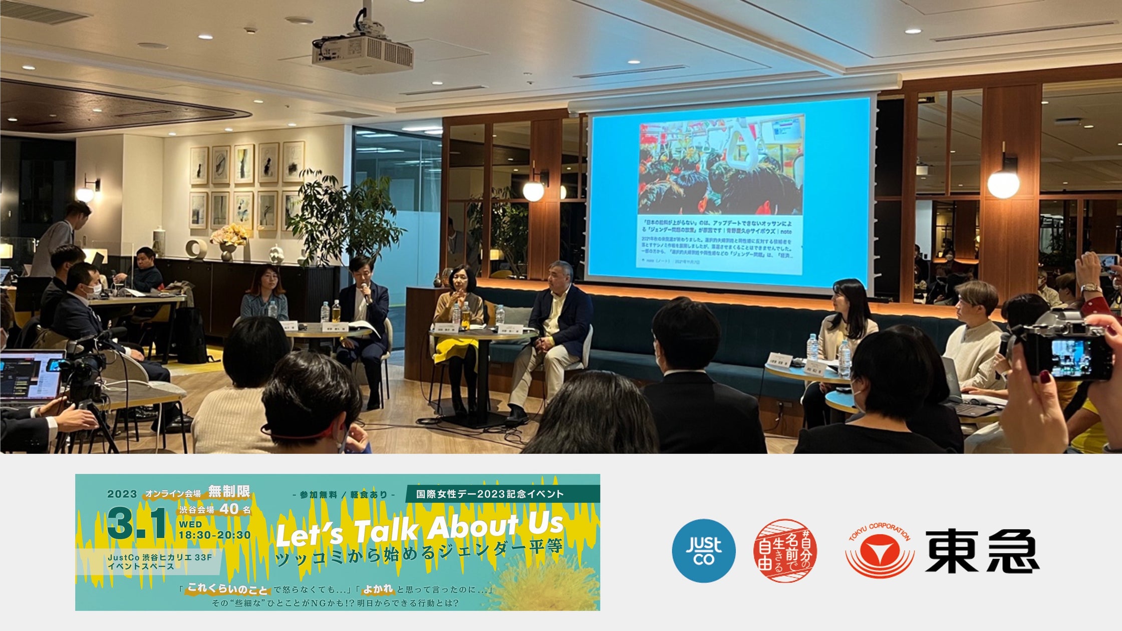 JustCo Japanと当アクションが共催して開催しましたトークイベント「Let’s Talk About Us.『ツッコミから始めるジェンダー平等』」についてのプレスリリースです。
