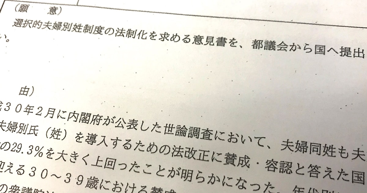 都議会、選択的夫婦別姓の法制化求める請願を賛成多数で可決 反対は自民だけ - 弁護士ドットコムニュース